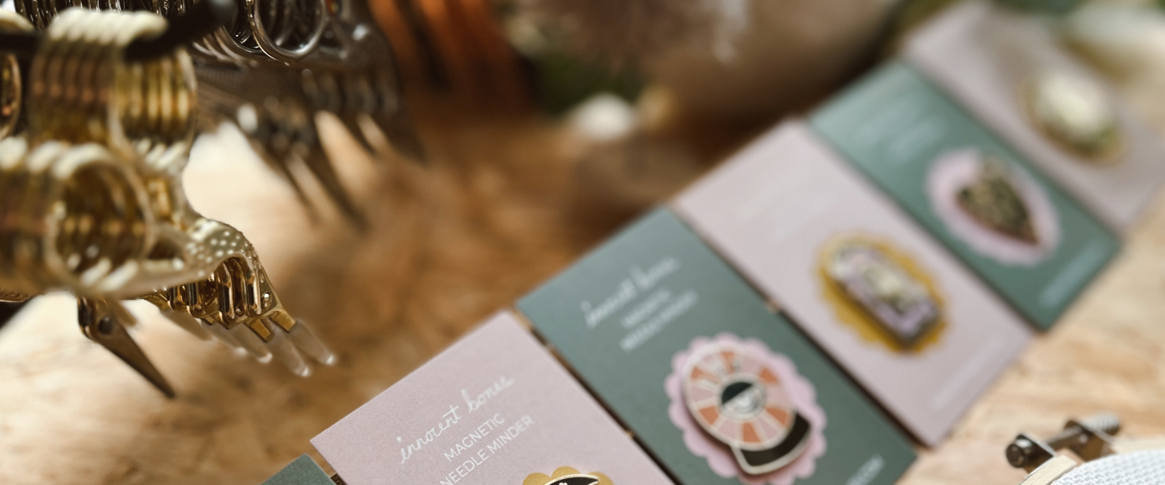 Our cosy studio is based in the North East of England. We hand make all our kits here, from winding the bobbins and cutting the fabric, to packing every single order and subscription box.