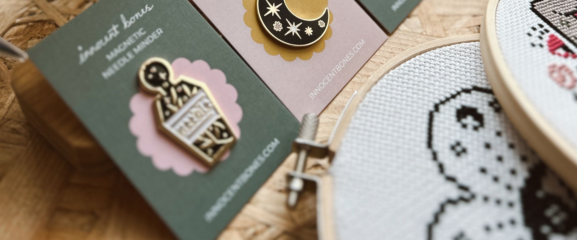 At Innocent Bones we make cross stitch kits for creative souls. Our passion is designing cross stitch patterns that capture the mystical, the magical, and the mysterious.